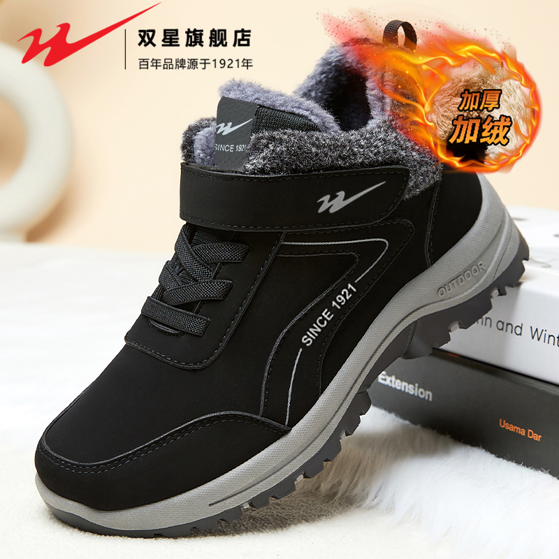 双星高帮女鞋冬季加绒加厚保暖棉鞋健步妈妈鞋中老年人运动爸爸鞋