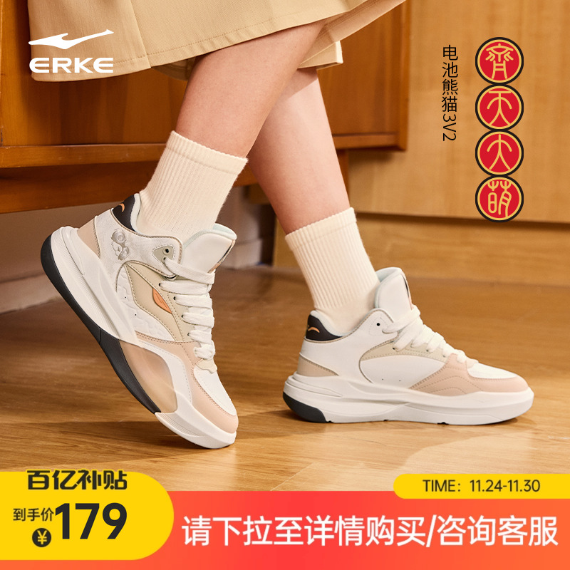 电池熊猫3鸿星尔克板鞋休闲鞋高帮女鞋冬季新款鞋子厚底运动鞋女