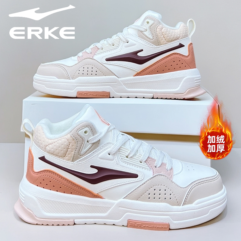 鸿星尔克棉鞋板鞋高帮女鞋冬季新款加绒保暖鞋子休闲软底运动鞋女