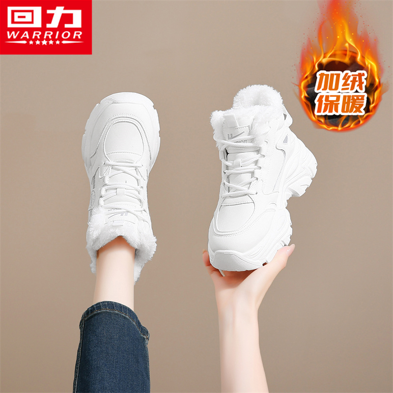 回力高帮女鞋冬季加绒加厚二棉鞋跑步学生运动小白增高松糕老爹鞋