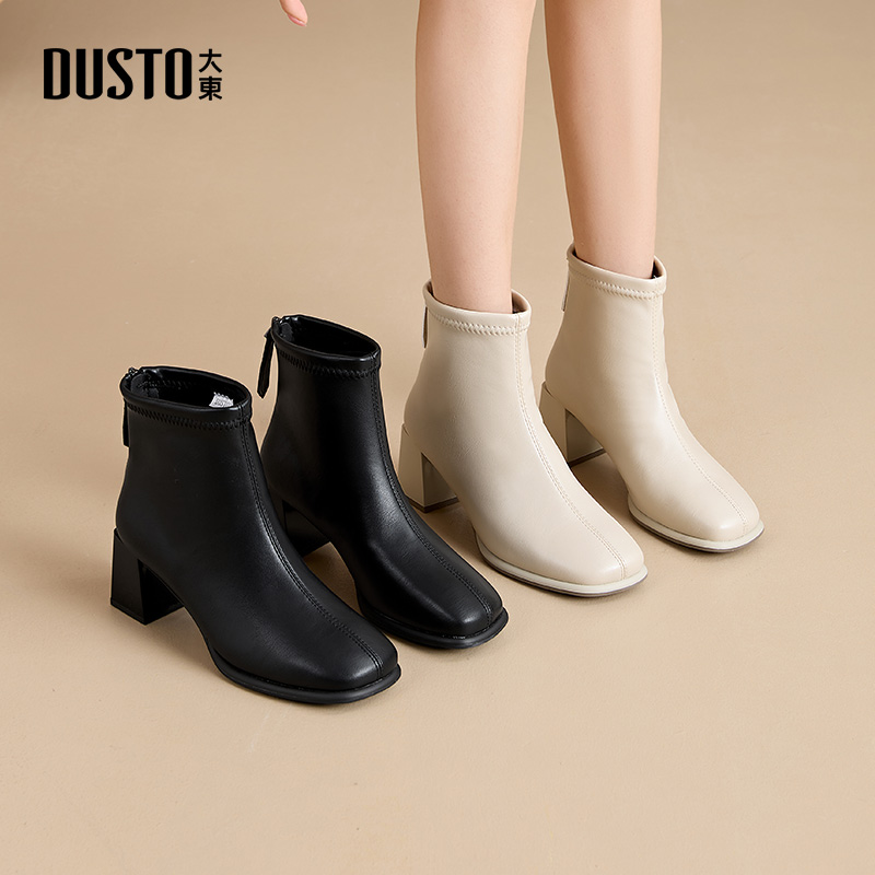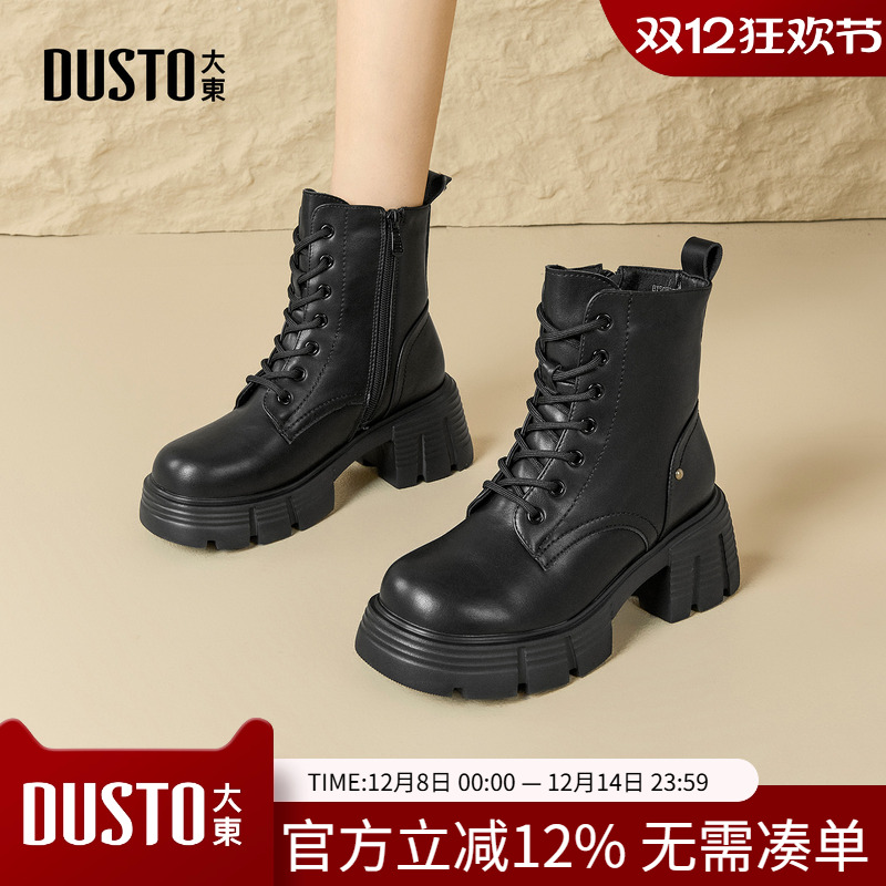 大东马丁靴女鞋2025年冬季新款英伦粗跟高跟侧拉链圆头鸡眼D3778