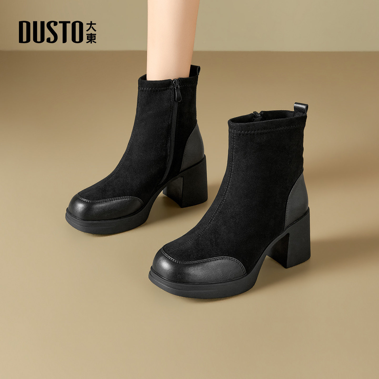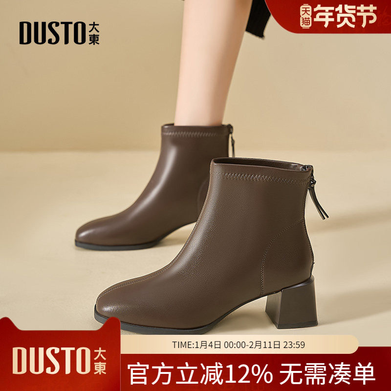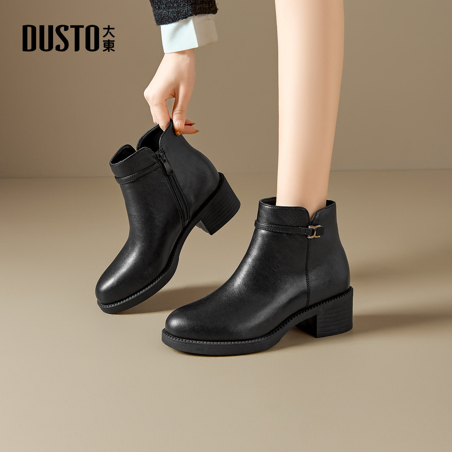 - 女短靴加绒粗跟