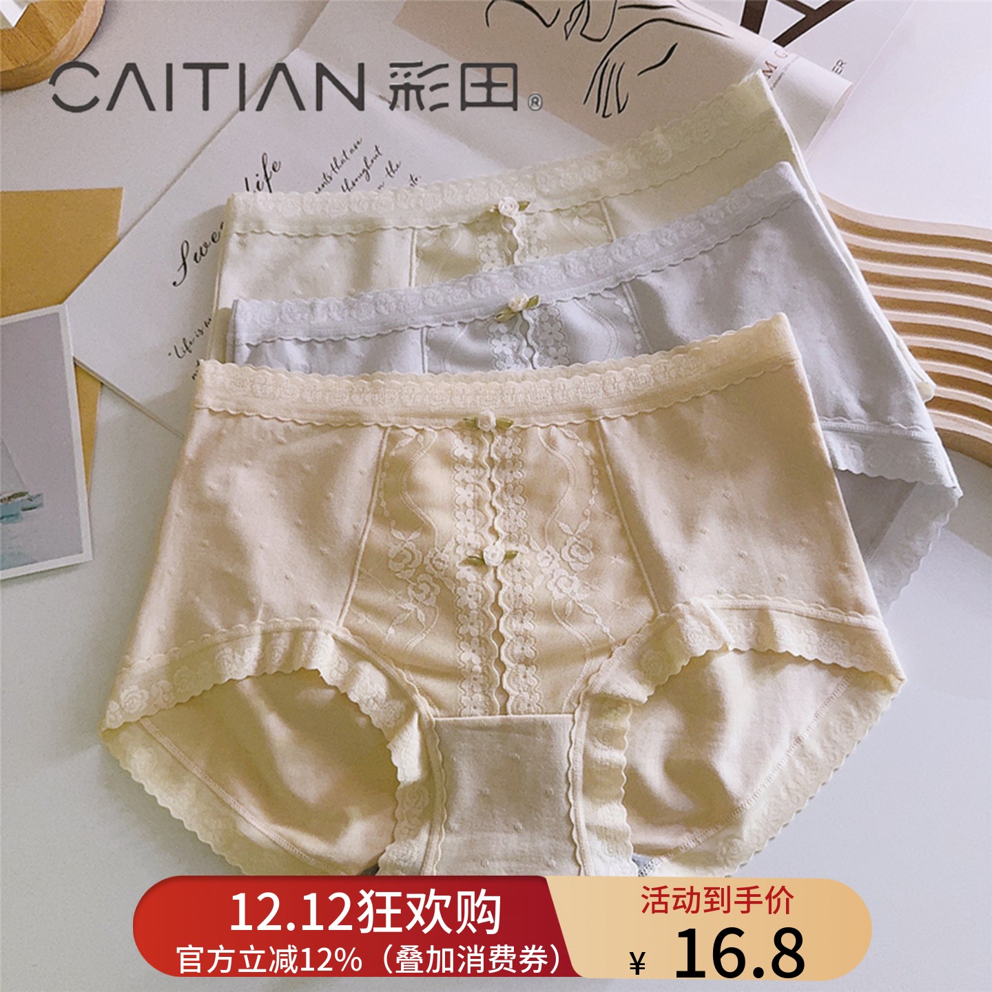 彩田莫代尔棉内裤女2025性感蕾丝边抗菌裆无痕中高腰女士三角短裤