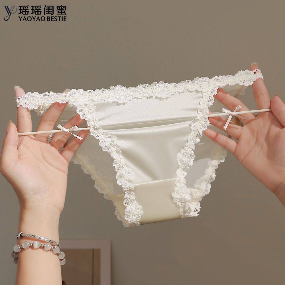 瑶瑶闺蜜女生纯欲风蕾丝花边透气细带性感内裤女缎面高级感三角裤