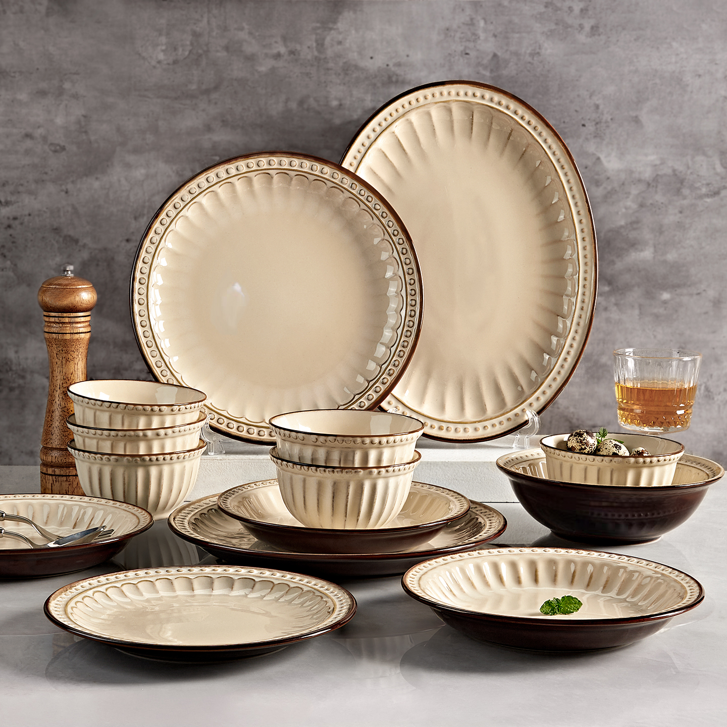 美式碗碟套装家用2025新款米饭碗盘子汤面碗复古高档餐具小碗