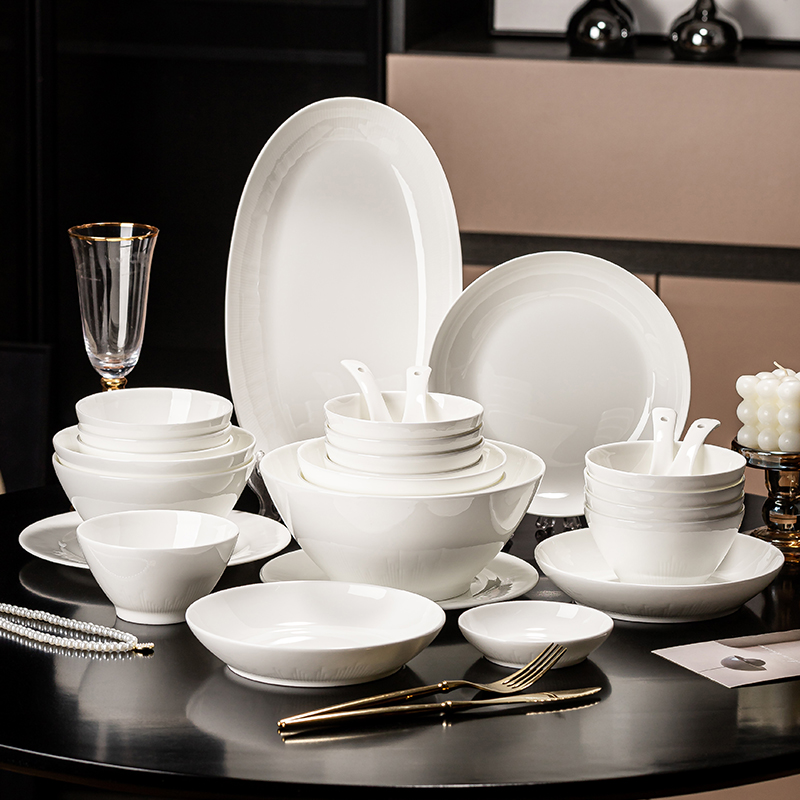 景德镇骨瓷餐具高档乔迁新居纯白碗盘组合釉下彩碗碟套装家用轻奢