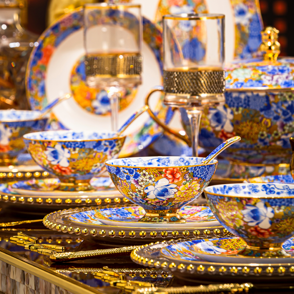 景德镇高档珐琅彩餐具碗碟套装家用新中式碗盘碗具碗筷盘子乔迁礼