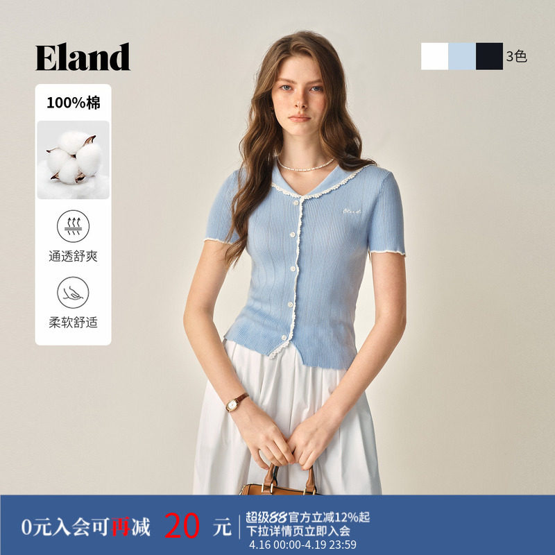 【棉棉冰】Eland衣恋短袖女针织T恤绞花毛衣POLO衫夏季款