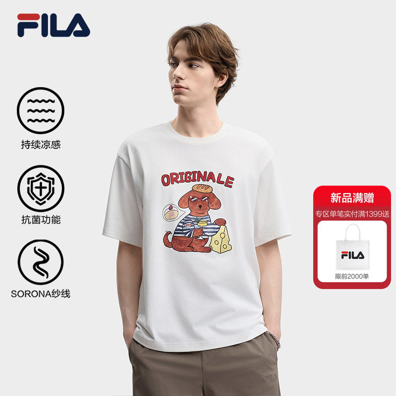 凉感FILA斐乐男子针织短袖衫2026夏季新款休闲宽松冰丝刺绣T恤女