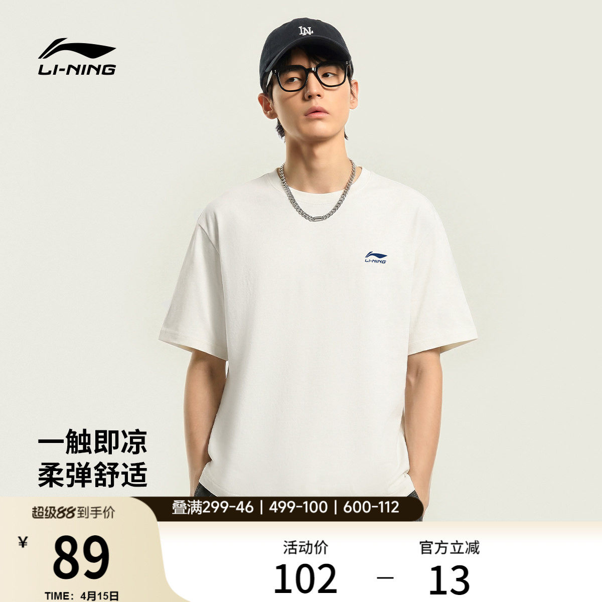 李宁冰丝短袖男夏季官方新款圆领半袖情侣休闲上衣针织运动T恤女