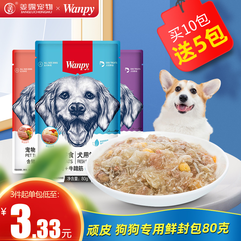 wanpy顽皮鲜封包狗罐头成犬幼犬湿狗粮伴侣泰迪狗湿粮拌饭80g