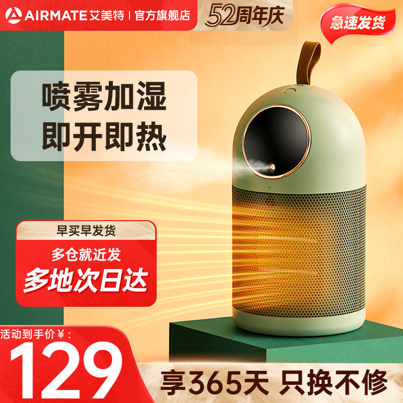 艾美特桌面加湿暖风机节能家用大眼萌小型速热办公宿舍取暖器浴室
