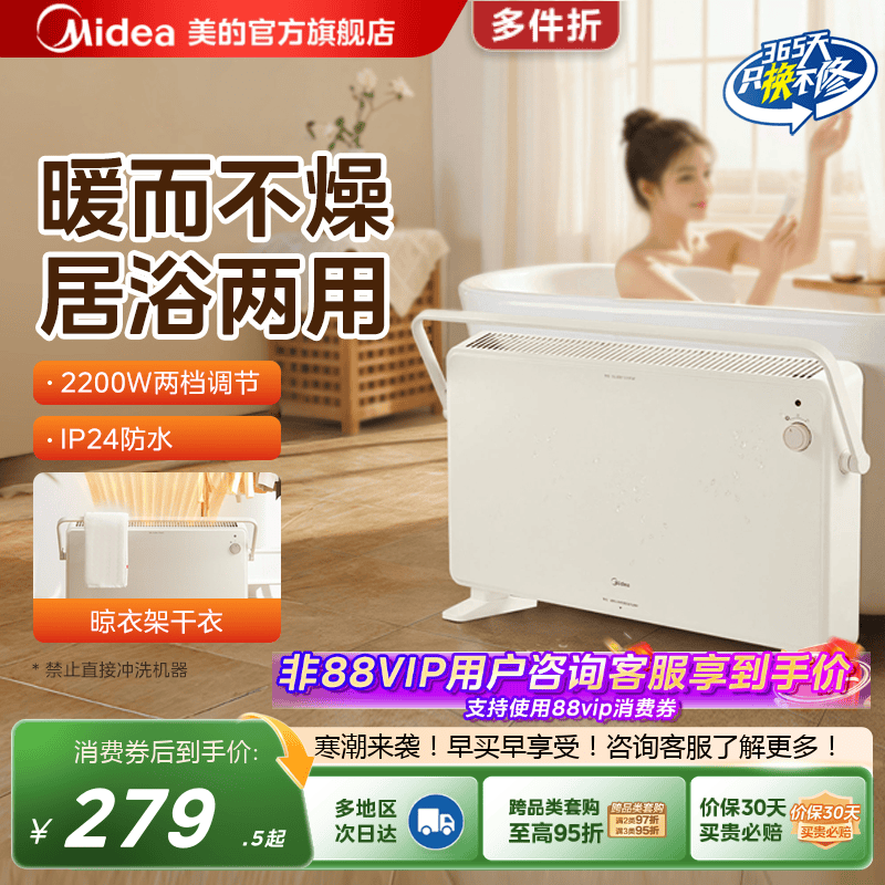 美的巨浪取暖器暖风机家用节能浴室大面积电暖气片2025新款烤火炉