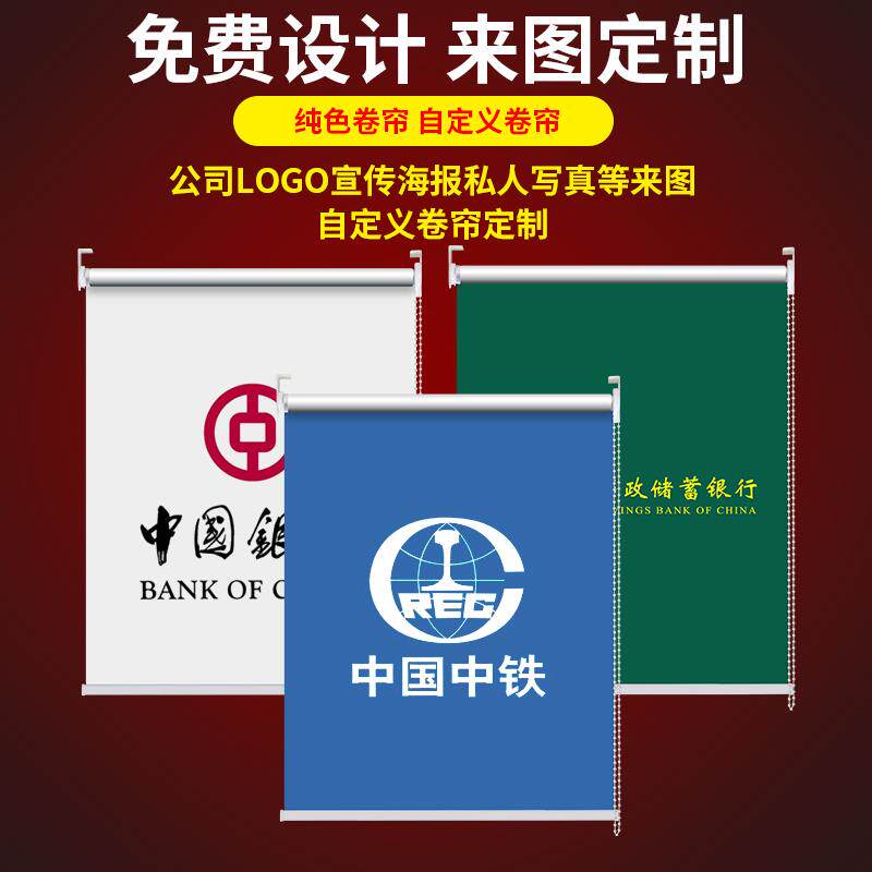 定制logo卷帘窗帘广告办公室公司银行工程遮光电动升降窗帘卷拉式