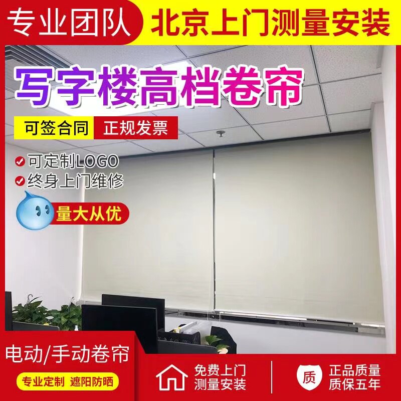 北京卷帘定制logo办公室窗帘写字楼卷帘隔热全遮光升降卷帘遮阳帘