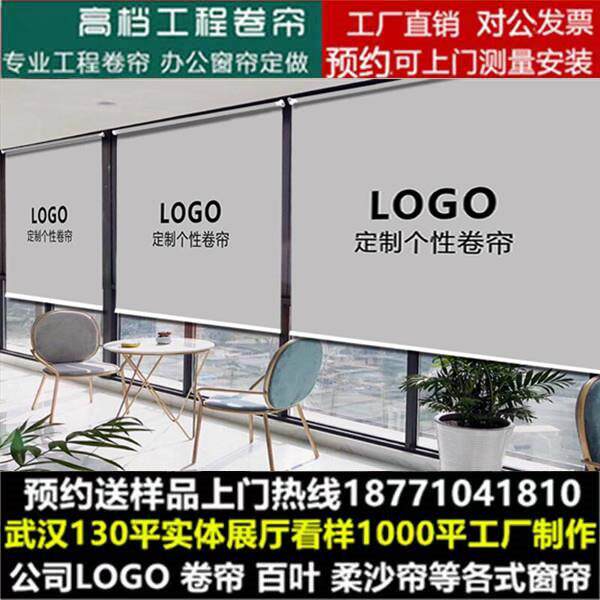 武汉厂家定制办公室窗帘防晒卷帘定制logo广告升降电动遮光工程帘