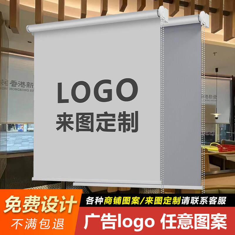 定制商铺广告logo遮阳帘窗帘办公室橱窗玻璃门防晒遮光卷拉式卷帘