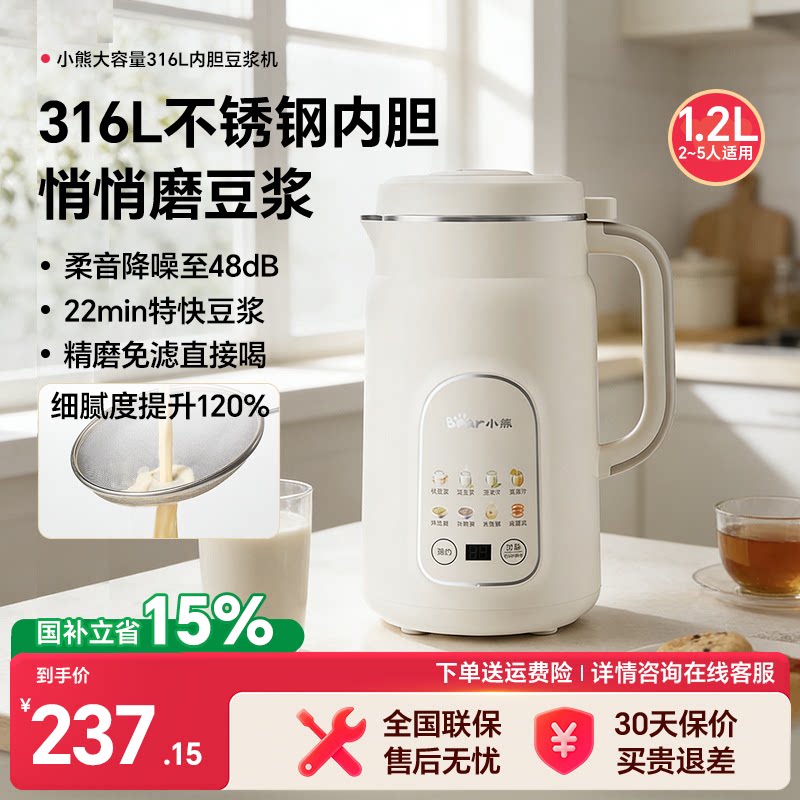 小熊豆浆机家用全自动大容量五谷杂粮不锈钢米糊机官方正品机新款