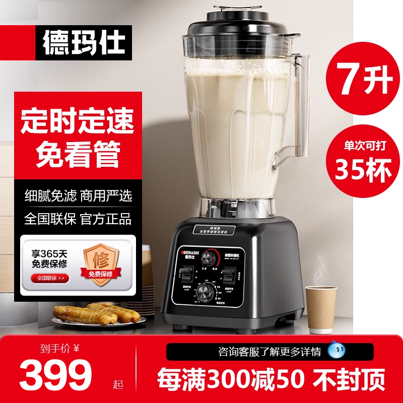 德玛仕豆浆机商用大容量榨汁机多功能破壁机大功率料理机商业沙冰