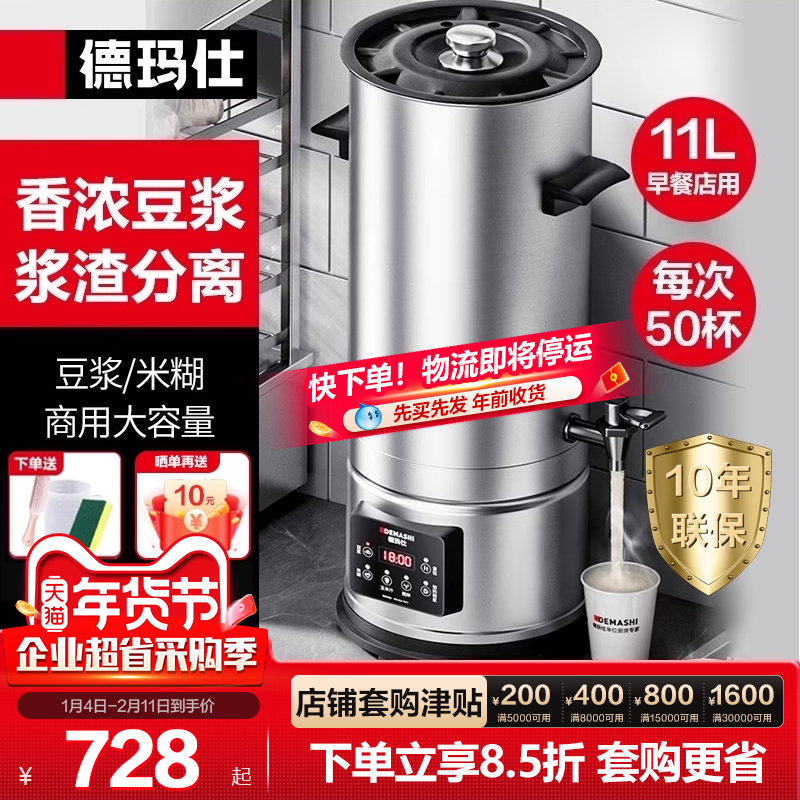 德玛仕豆浆机商用全自动一体加热大容量早餐店专用豆渣分离磨浆机