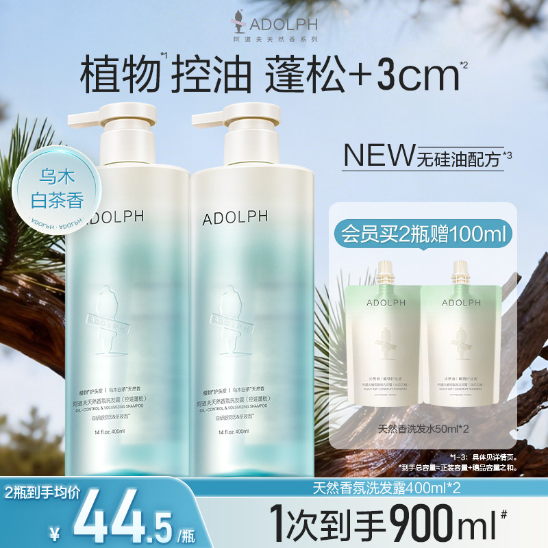 【王一博同款】阿道夫天然香氛无硅油植物去屑控油男女洗发水套装