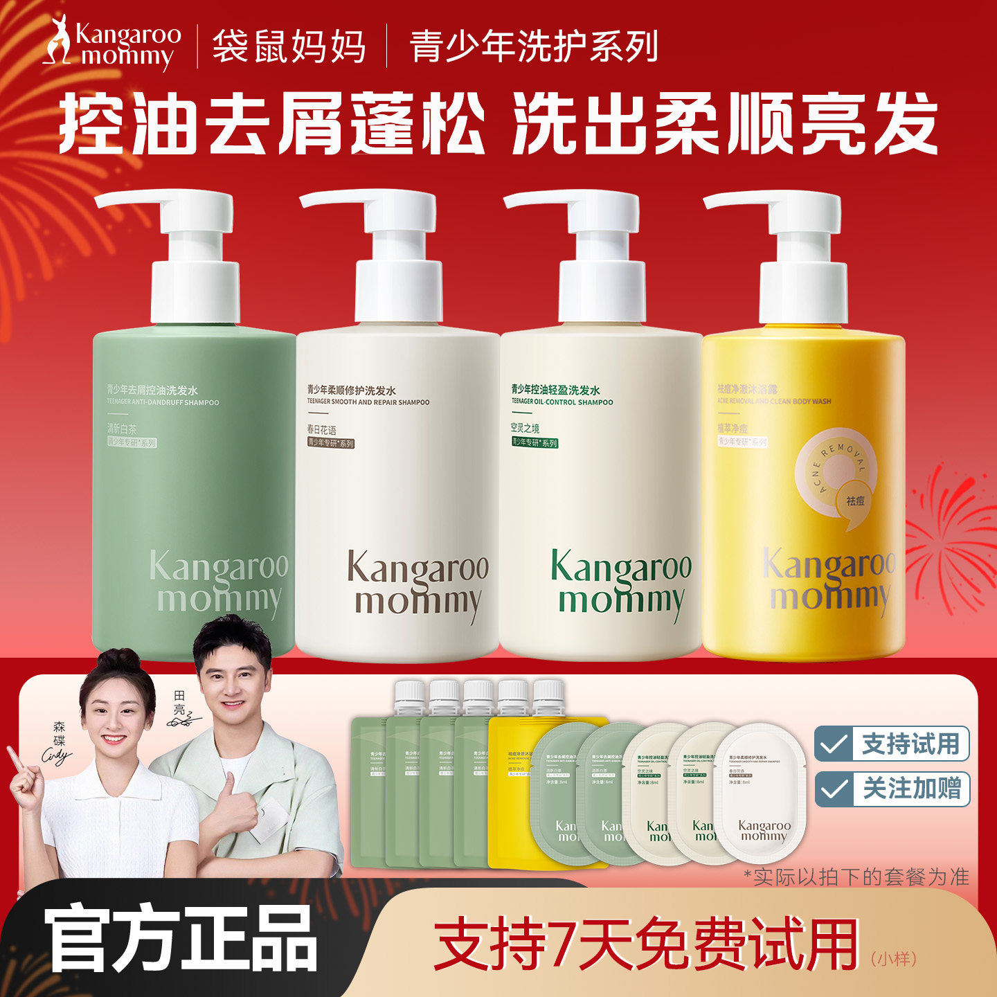 袋鼠妈妈青少年洗发水套装儿童洗护男女孩控油去屑蓬松官方旗舰店