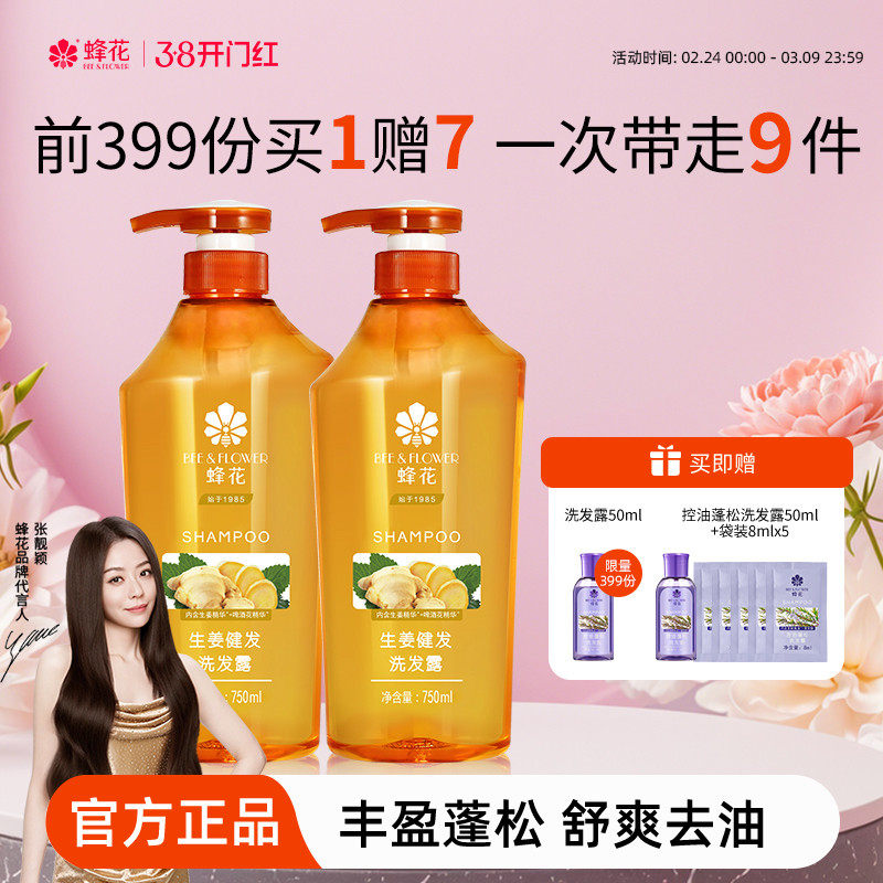 蜂花洗发水套装无硅油生姜啤酒花强韧亮泽男女洗发露去油丰盈蓬松