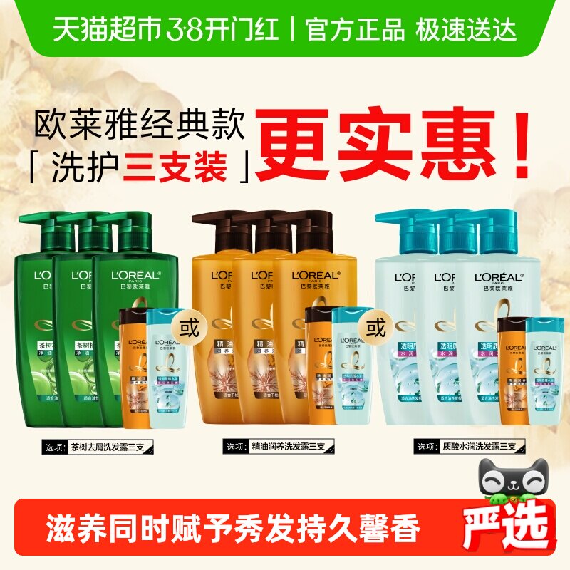 欧莱雅精油质酸透明质酸多效修护茶树洗发水套装柔顺去屑控油清爽