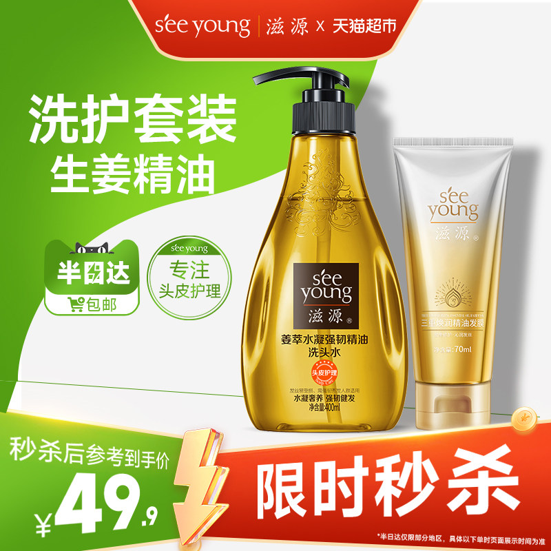 滋源无硅油姜萃精油洗发水套装470ml控油强韧固发洗发膏精油发膜