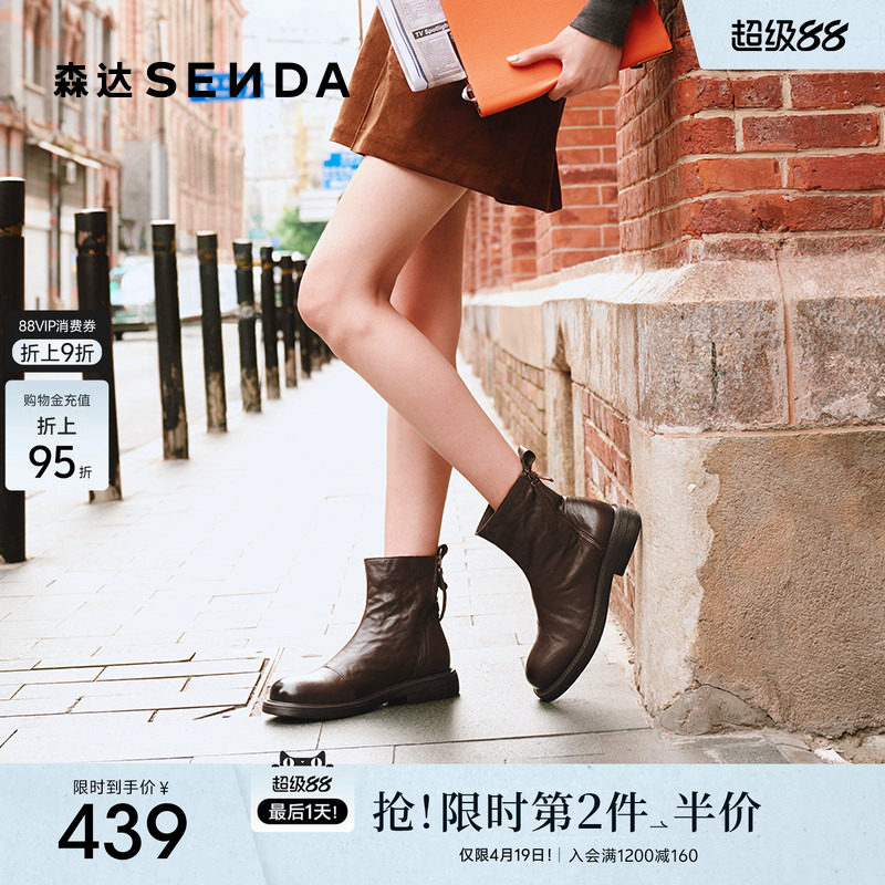 森达休闲靴冬季新款复古百搭通勤抓纹擦色牛皮短靴ZTI07DD5