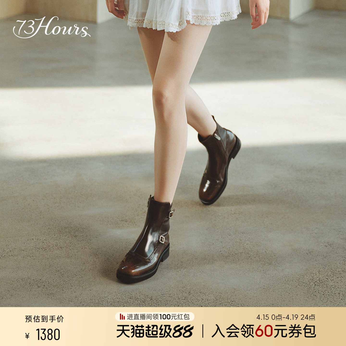 明星同款73hours女鞋分享落日秋冬新款擦色英伦风短靴切尔西靴子