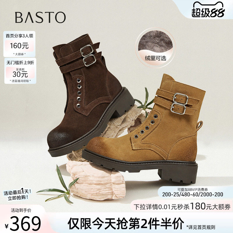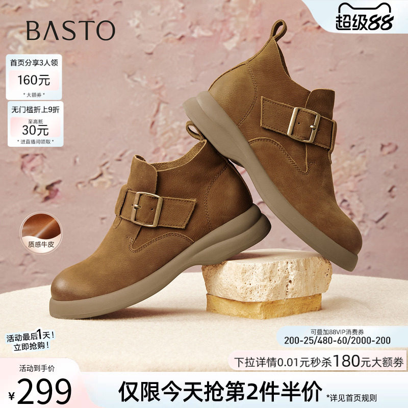 百思图冬季商场新款牛皮擦色马丁靴大黄靴休闲女短靴S2263DD5