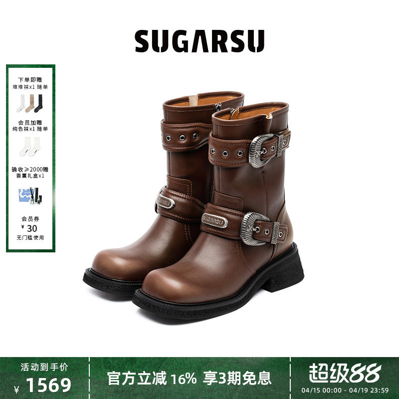 白鹿赵今麦同款|SUGARSU酥履秋冬美拉德时装高跟擦色骑士短靴女