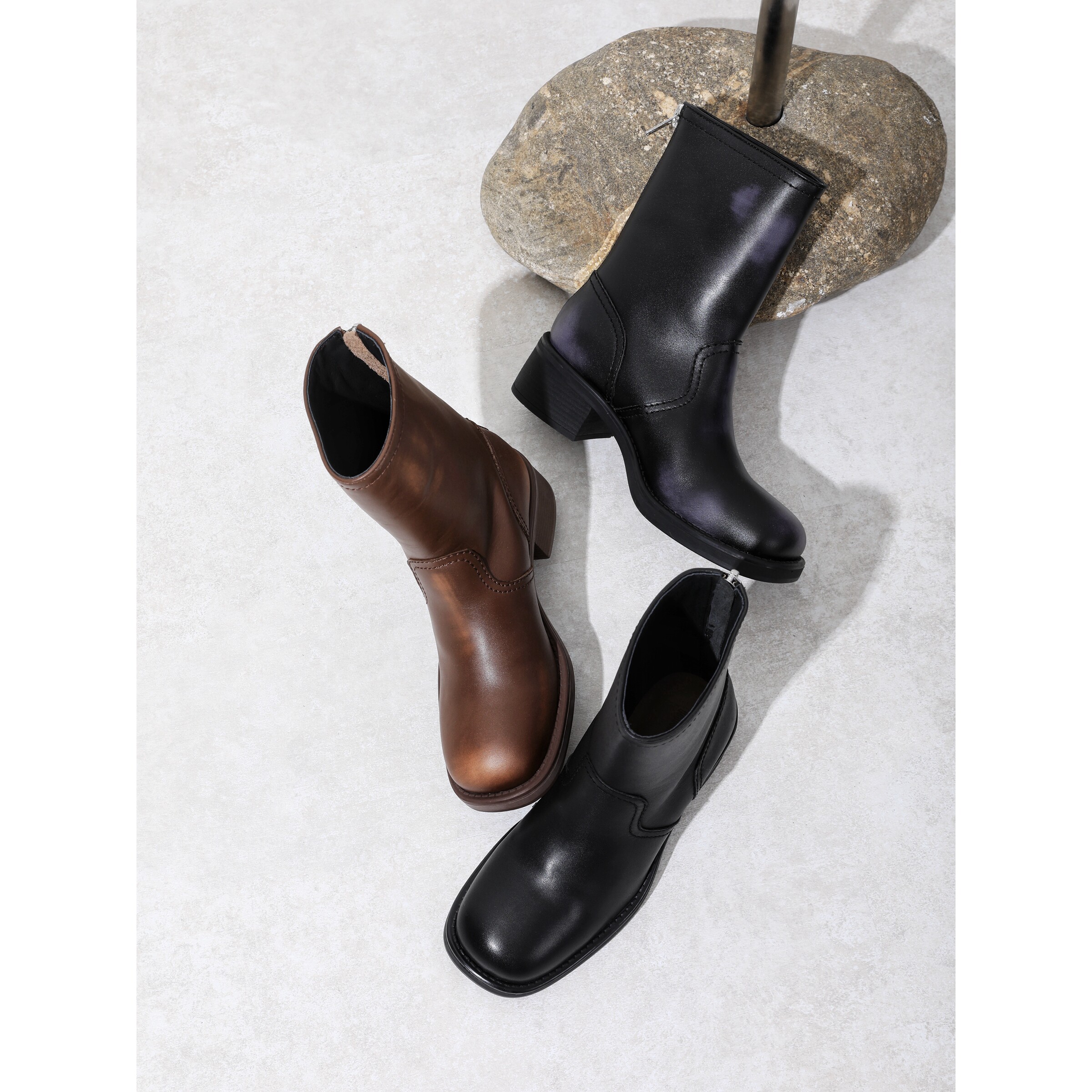 nnmiss/5cm复古极简风坡跟瘦瘦靴设计感擦色方头后拉链通勤短靴