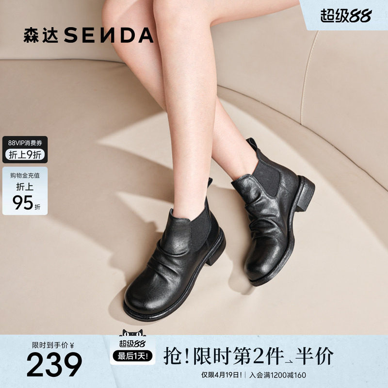森达弹力切尔西靴女冬新潮流绒面擦色褶皱休闲短靴ZTI39DD5