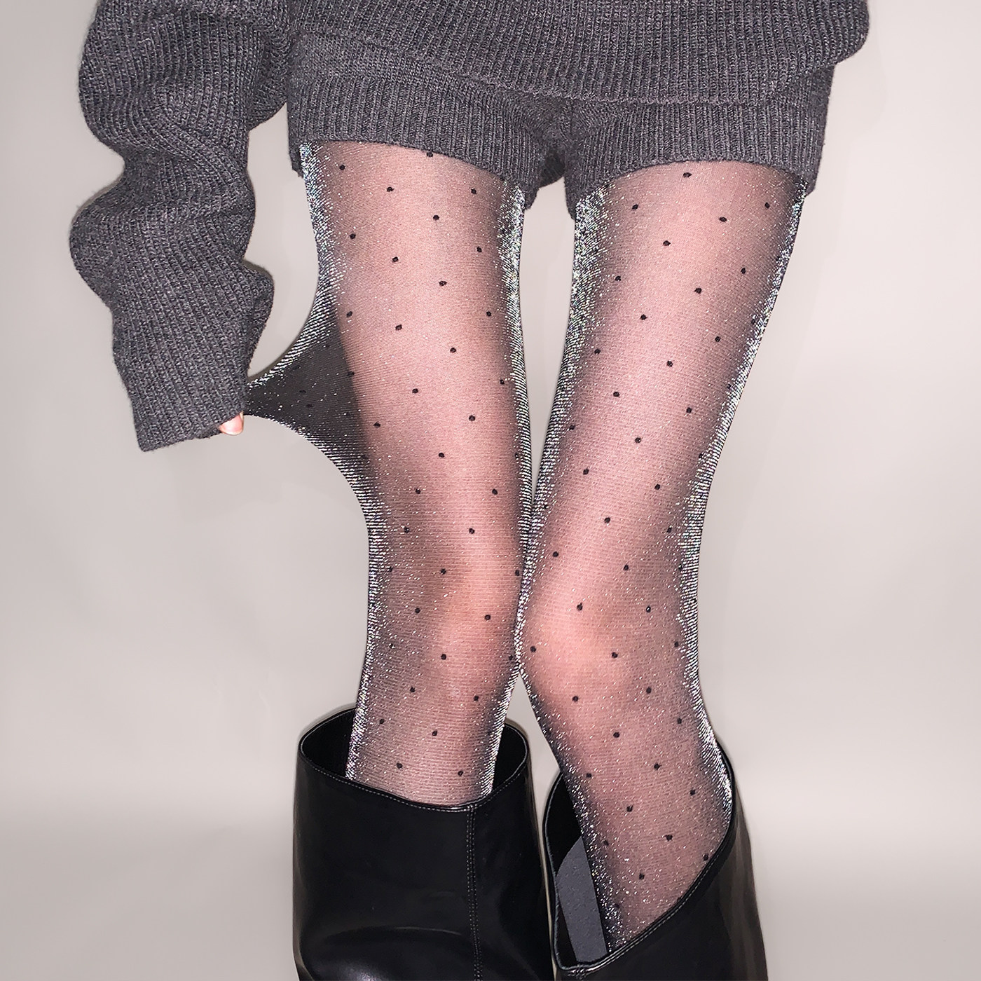 夜间教习室波点丝袜女秋冬薄款辣妹银葱连裤袜子显瘦闪光性感黑丝