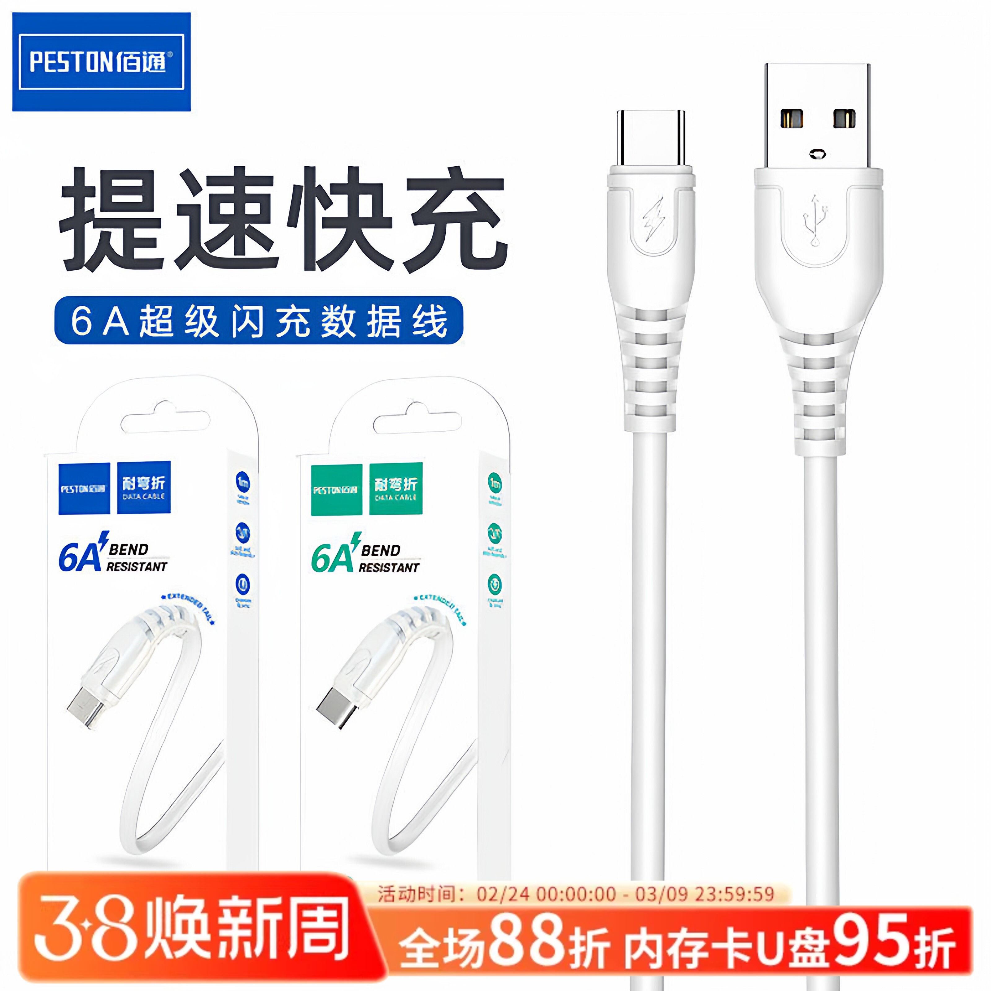 公牛精品铜芯6A超级快充适用iphone华为荣耀P50充电线P60数据传输Type-C全兼容安卓乐视闪充线盒装批发