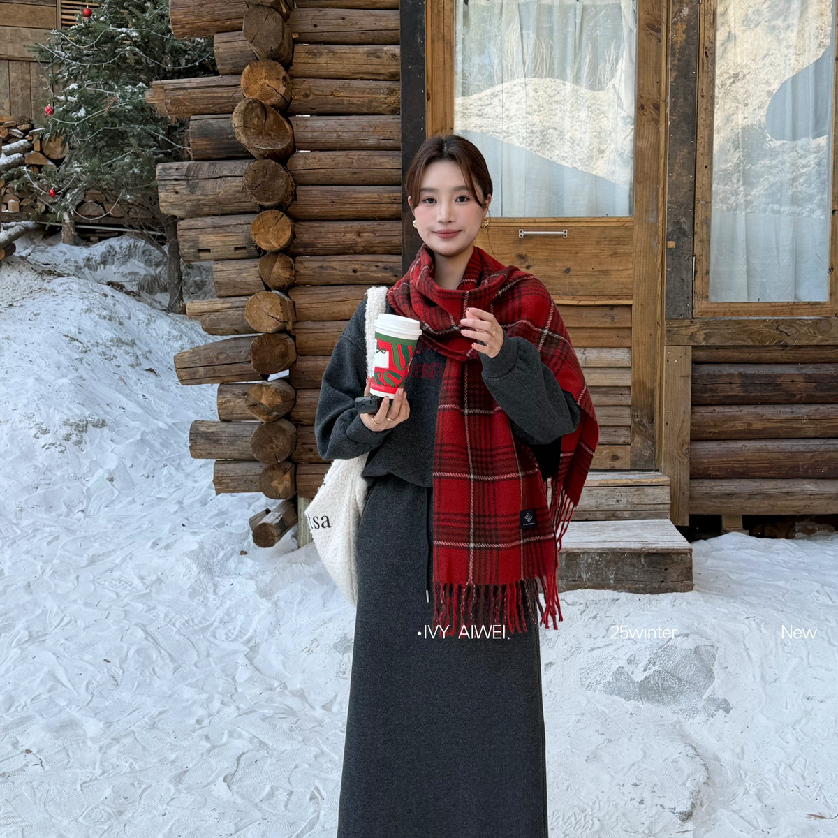 Y.JIA 伊嘉-围感费尔岛毛衣+高腰包臀半身裙套装(配围巾)1325-55