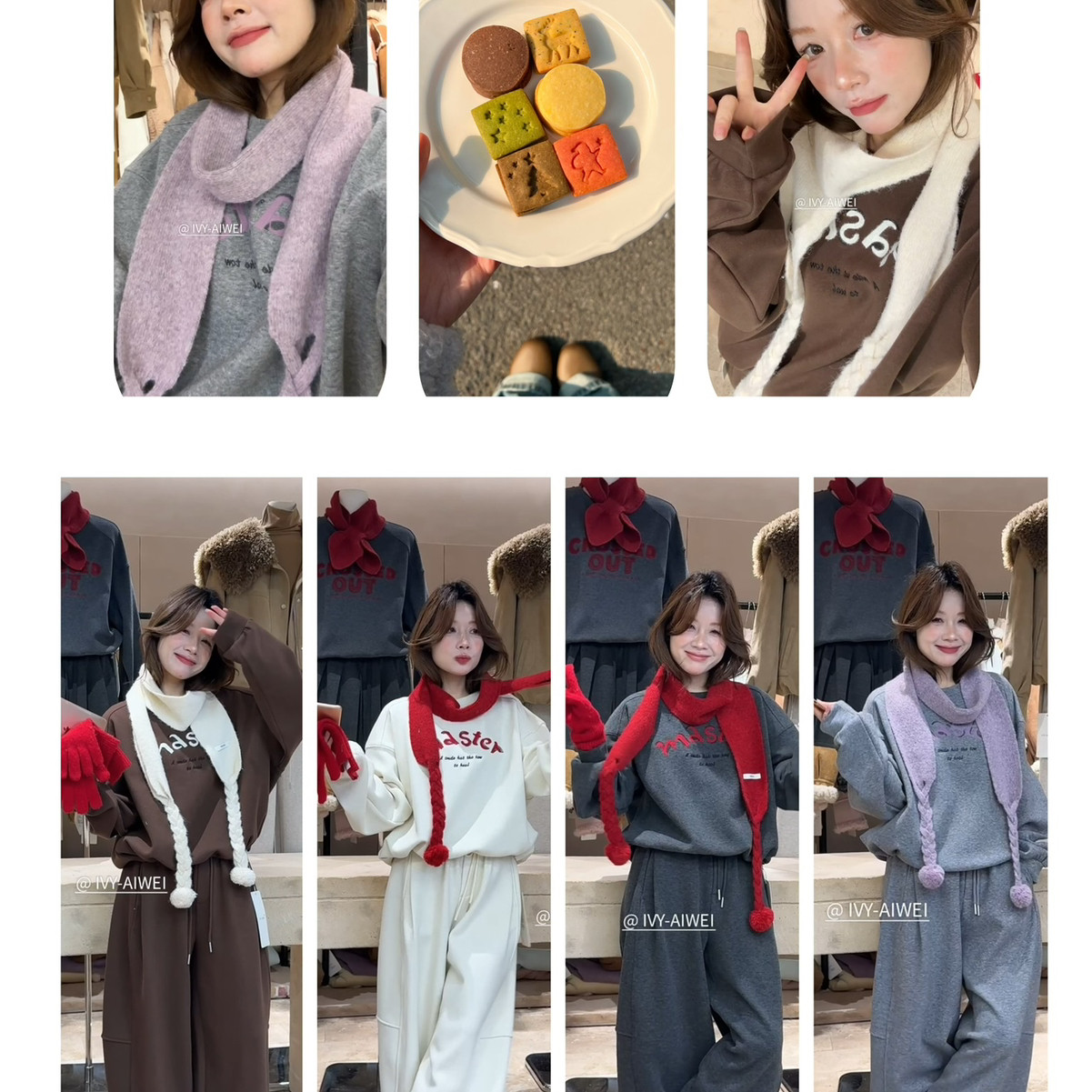 艾薇-韩系休闲慵懒刺绣加厚保暖卫衣+松紧腰休闲裤套装(配围巾)
