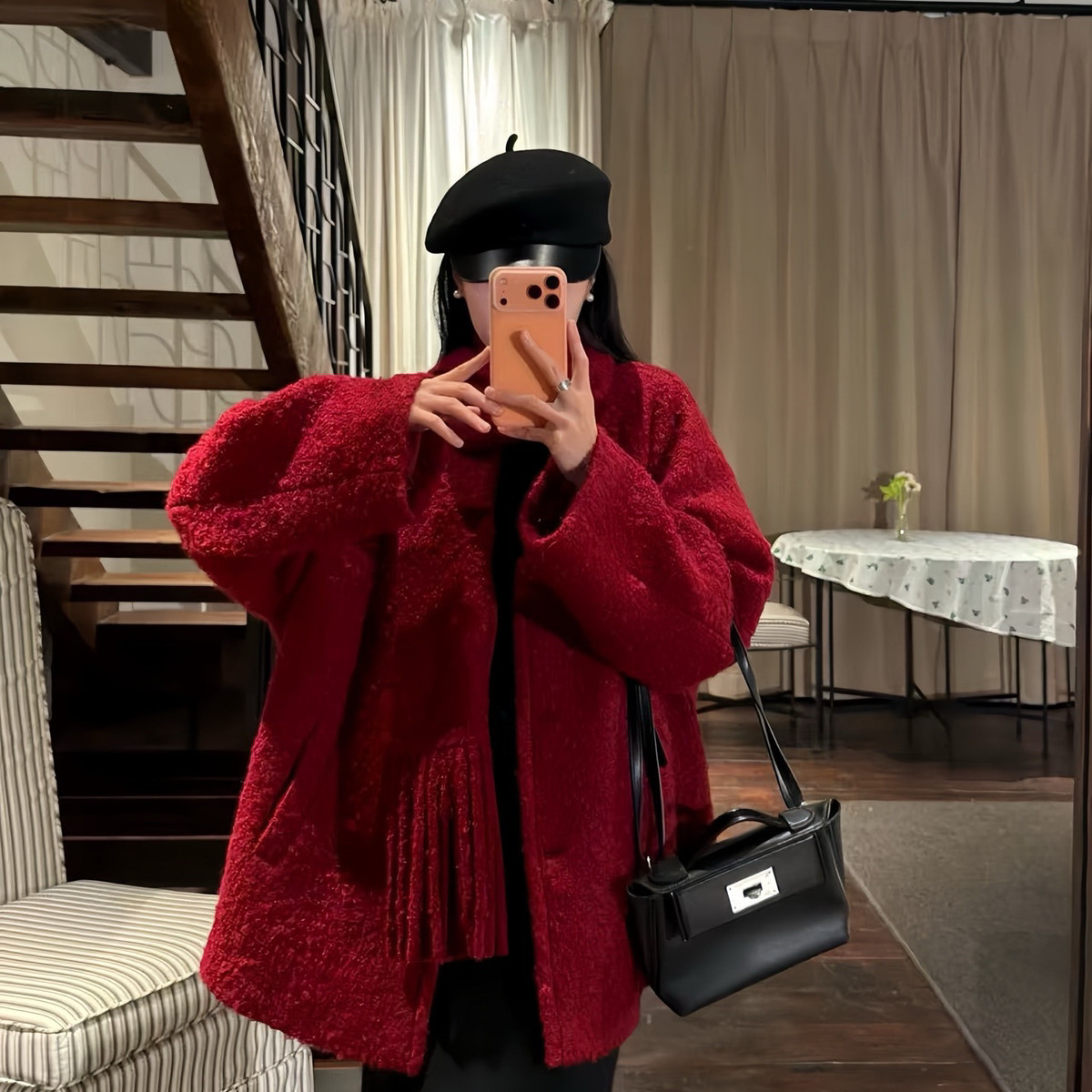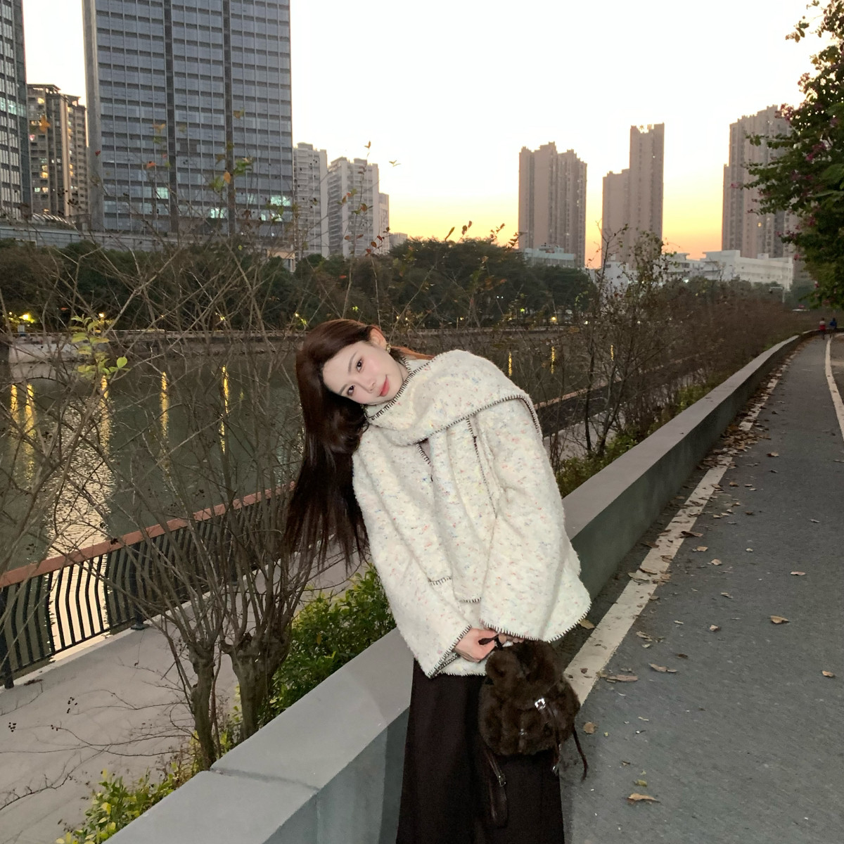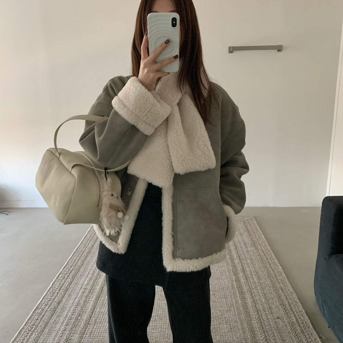 希宥HOUSE 冬上新氛围感韩系配围巾羊羔毛双穿外套短外套(配围巾)