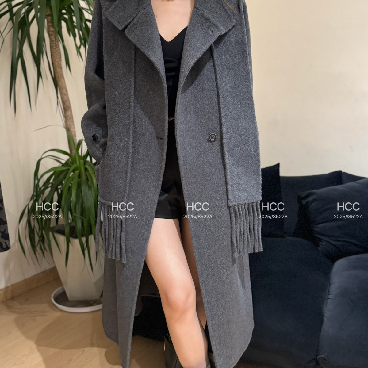 诺诺简约高级感立领长款羊毛外套(配围巾)(含66羊毛)59-503