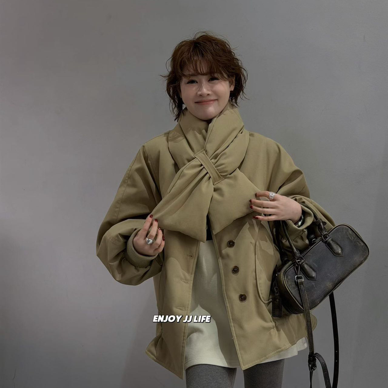 希宥HOUSE 冬上新自留款超韩系配围巾羽绒服外套短外套(配围巾)
