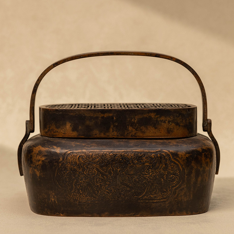 民国铜诗文方形墨盒老物件收藏品文玩古董真品文房用品摆件铜墨盒