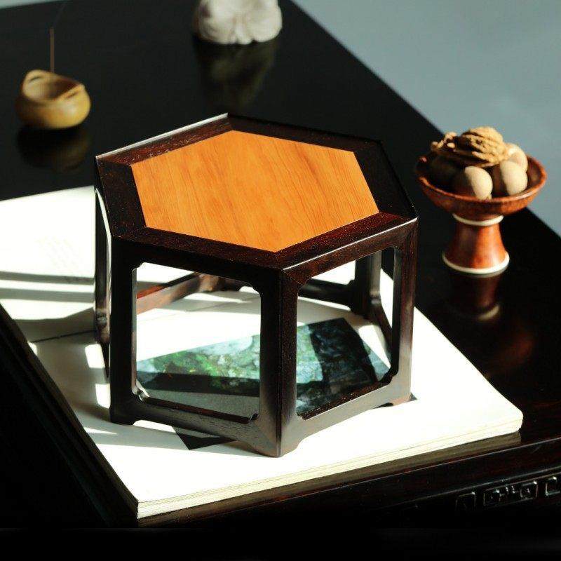 酸枝六角器座底座老物件收藏品文玩古董真品客厅花瓶佛像底座摆件