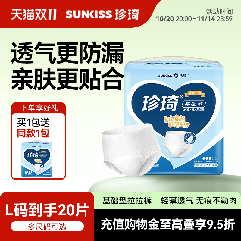 珍琦成人拉拉裤基础型ML大码男女士内裤式纸尿裤老年人专用尿不湿
