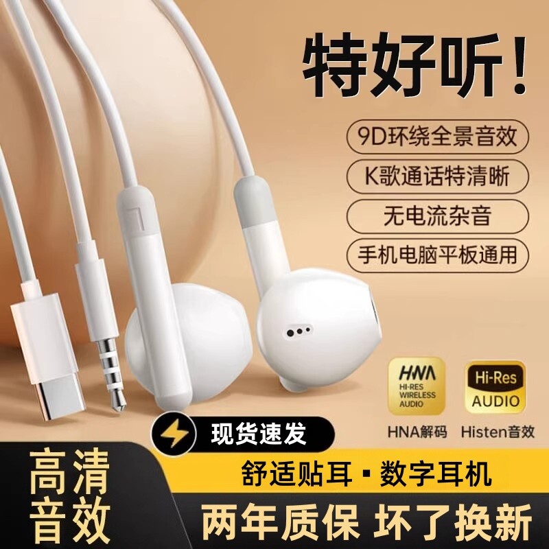 有线耳机Typec接口适用华为vivo小米OPPO耳塞通用高音质线控耳麦