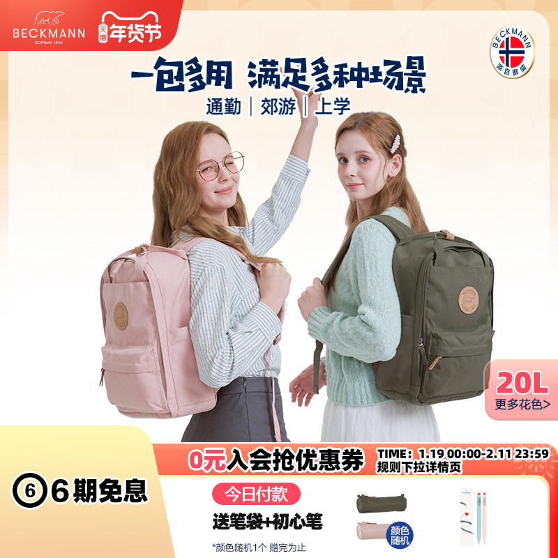 beckmann贝克曼书包男女学生便携通勤户外旅行20L休闲双肩背包