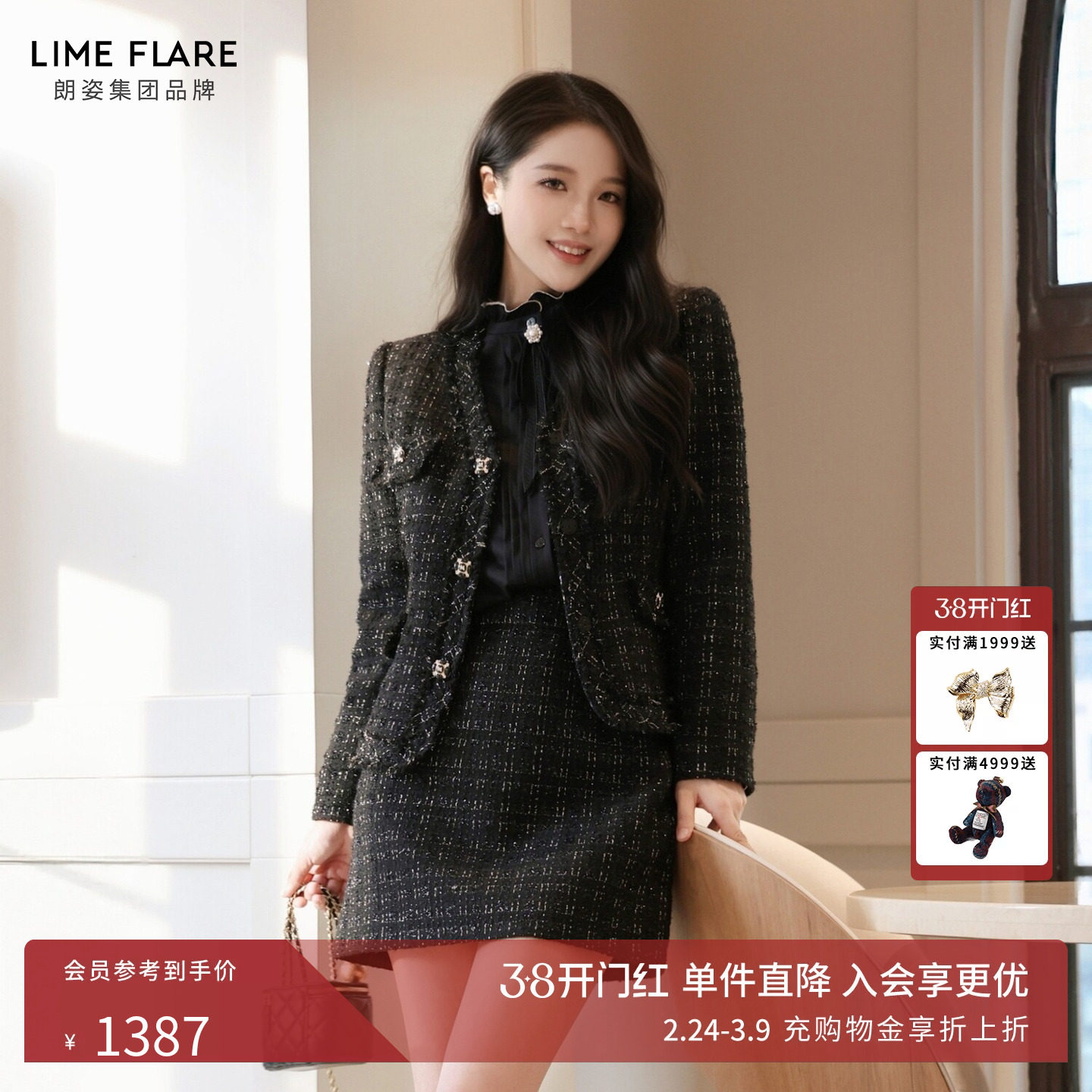 菲梦伊含羊毛小香风套装女冬季钉珠加厚毛呢外套半身裙职业两件套