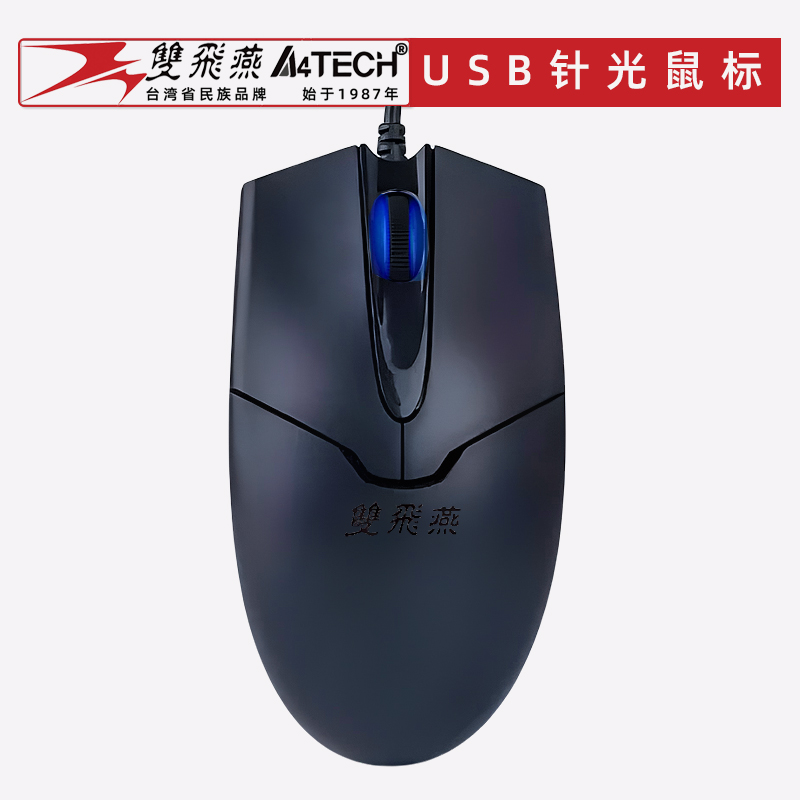 双飞燕有线鼠标USB扁接口光电笔记本台式电脑通用办公商务学习