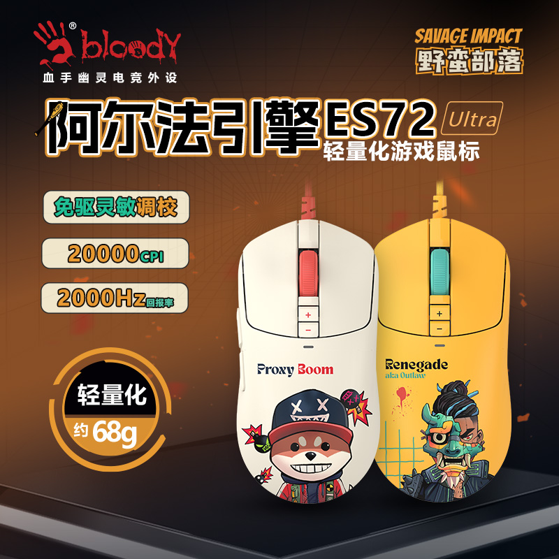 双飞燕野蛮部落ES72Ultra有线鼠标轻量化游戏电竞FPS电脑CSGO打瓦
